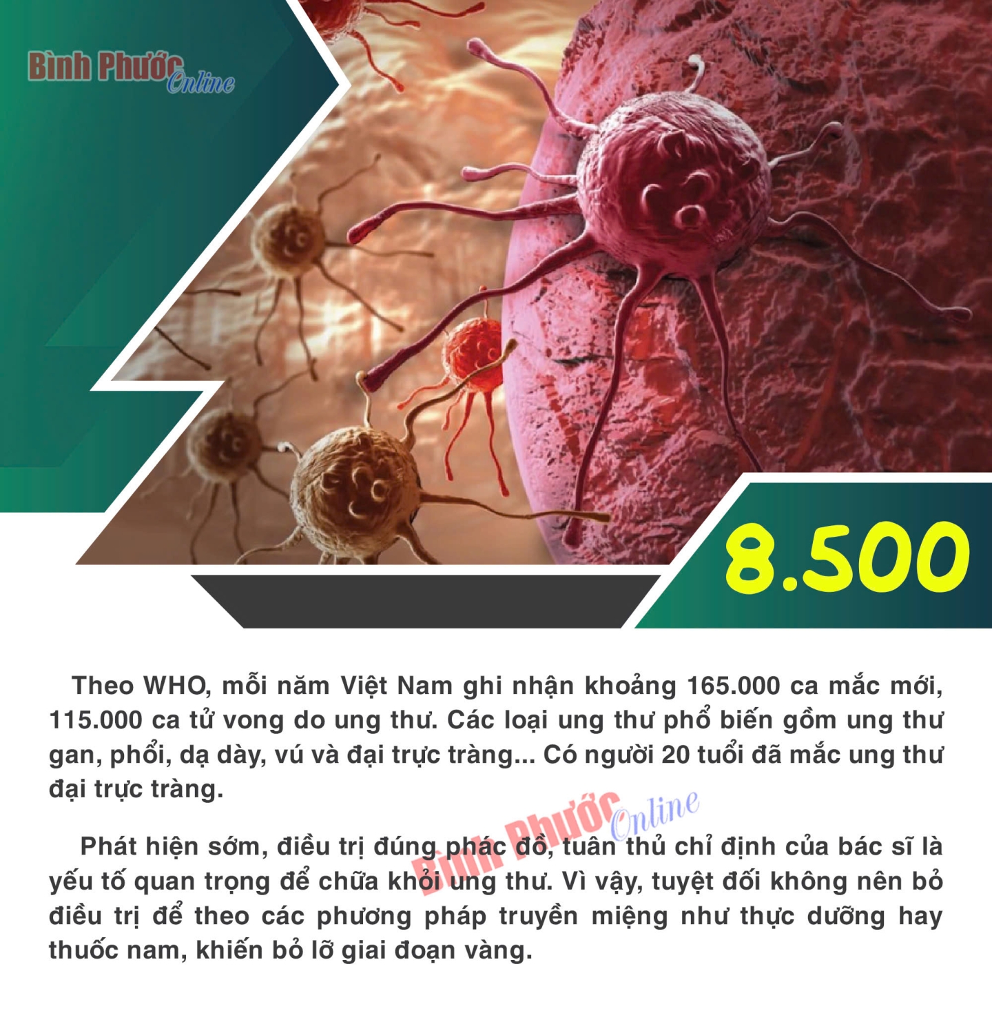 Ung thư gây ra gần 8.500 ca tử vong mỗi năm ở Việt Nam