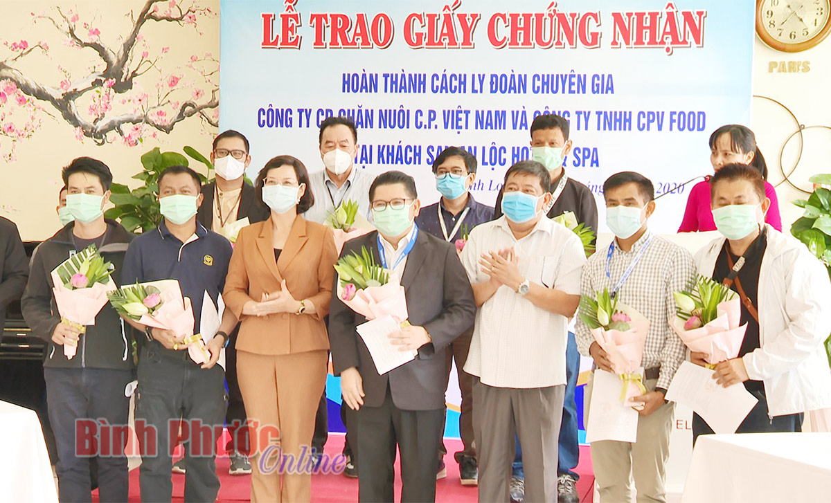Dịp này, thay mặt các chuyên gia vừa thực hiện xong cách ly tập trung, ông Montri Suwanponsri, Tổng giám đốc Công ty cổ phần chăn nuôi CP tại Việt Nam gửi lời cảm ơn lãnh đạo tỉnh, thị xã Bình Long vì đã quan tâm sâu sát đến tình hình sức khỏe, tạo điều kiện tốt nhất cho các chuyên gia trong suốt quá trình thực hiện cách ly. Ông cho rằng, đây là tình cảm quý báu mà lãnh đạo địa phương dành cho các chuyên gia cũng như công ty, giúp công ty gắn bó đầu tư bền lâu hơn với tỉnh.