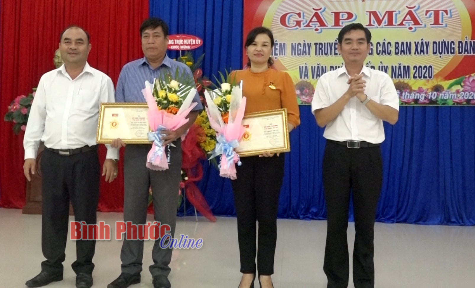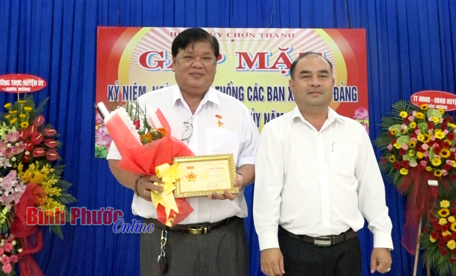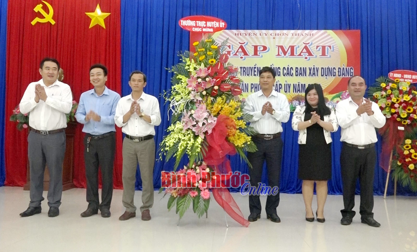 Lãnh đạo Huyện ủy Chơn Thành, tặng hoa chúc mừng các Ban xây dựng Đảng và Văn phòng cấp ủyTại buổi họp mặt, các đại biểu đã cùng nhau ôn lại truyền thống vẻ vang của các ban xây dựng Đảng, văn phòng cấp ủy trong 90 năm qua.