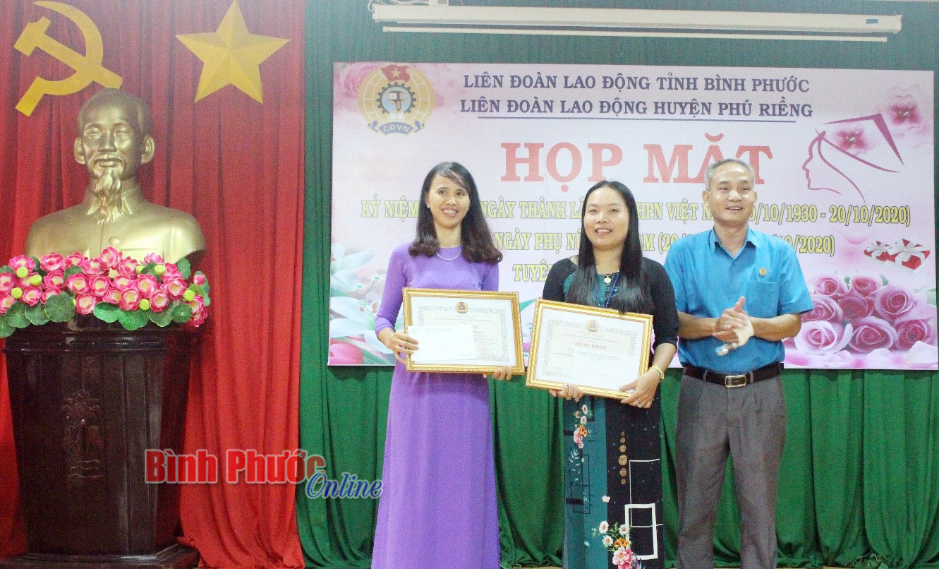 Các tập thể được nhận bằng khen của LĐLĐ tỉnhLĐLĐ huyện Phú Riềng có 1.510 công đoàn viên là nữ. Nhiều năm qua, các nữ công đoàn viên luôn khẳng định được vai trò quan trọng và có nhiều đóng góp lớn lao cho sự phát triển vững mạnh, toàn diện của tổ chức công đoàn, giữ gìn phát huy phẩm chất đạo đức trong sáng, sống giản dị, nhân ái, đoàn kết, giúp đỡ nhau trong cuộc sống cũng như công tác.