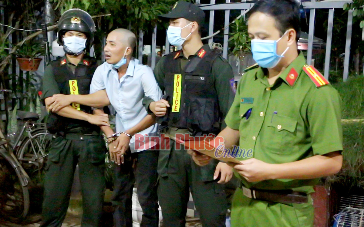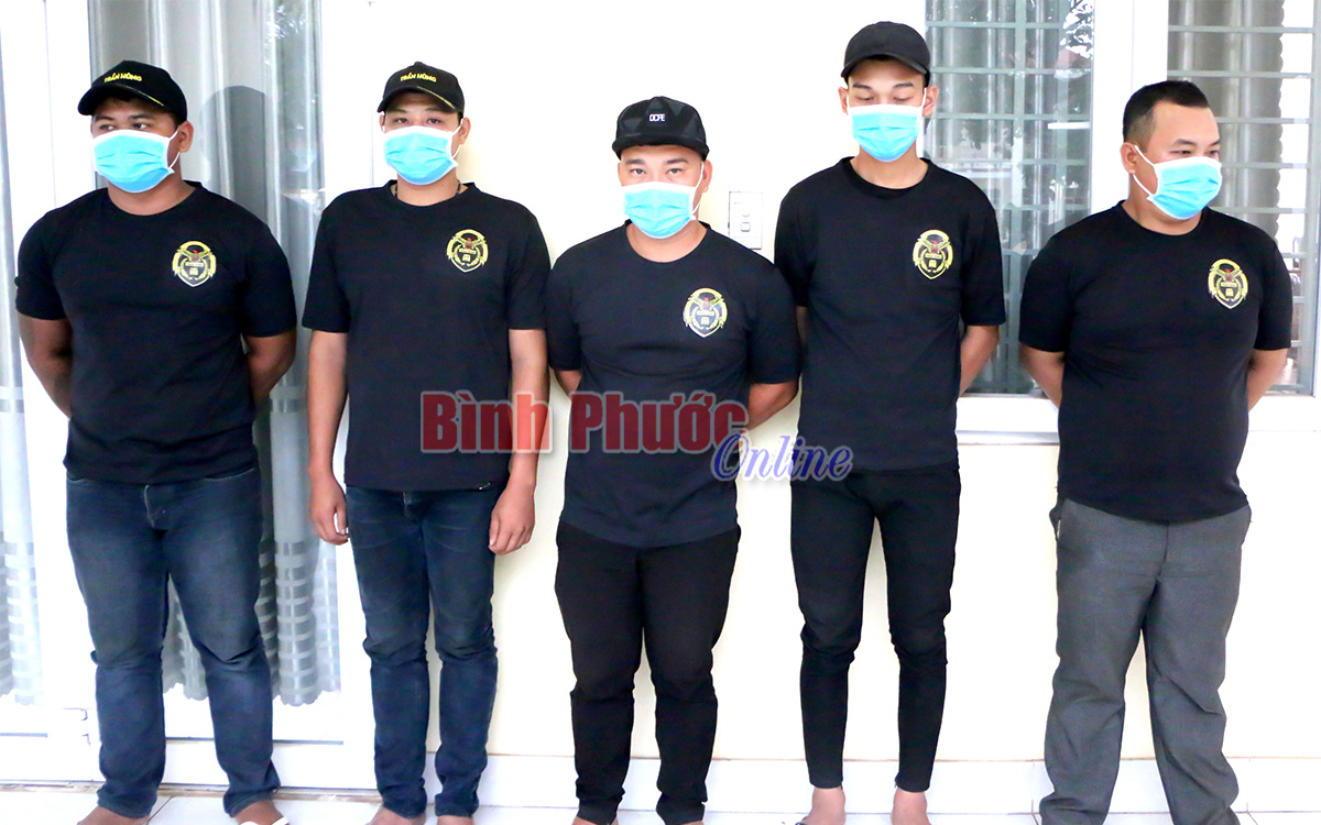 Các đối tượng bị tạm giữ hình sự gồm: Đinh Văn Anh (thường gọi là Hổ), 31 tuổi, trú ấp Cầu Rạt, xã Tân Phước, huyện Đồng Phú; Cao Hoàng Ngọc Bích, 29 tuổi, trú phường Thạnh Lộc, quận 12, TP. Hồ Chí Minh; Trị Sang Lộc, 20 tuổi và Đoàn Đào Nhân, 23 tuổi, đều trú khu phố Phước Hòa, phường Tân Thiện, TP. Đồng Xoài; Nguyễn Minh Vẹn, 31 tuổi, trú ấp Suối Da, xã Tân Hưng, huyện Đồng Phú; Đỗ Trọng Huy, 19 tuổi, trú ấp 6, xã Tân Thành, TP. Đồng Xoài; Nguyễn Ngọc Phương Duy, 25 tuổi, trú ấp Cây Điệp, xã Tân Phước, huyện Đồng Phú.
