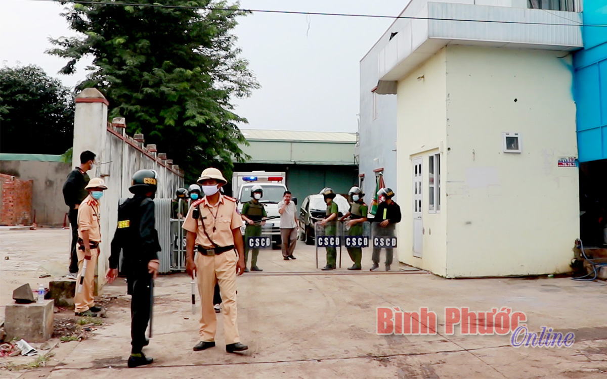 Trước đó, khoảng 16 giờ ngày 4-7-2021, Phòng Cảnh sát hình sự Công an tỉnh Bình Phước phối hợp Công an TP. Đồng Xoài và Công an phường Tân Bình bắt quả tang nhóm đối tượng trên đang dùng vũ lực đe dọa anh Nguyễn Lê Lâm, chủ một nhà kho phế liệu tại khu phố Tân Trà 2, phường Tân Bình, TP. Đồng Xoài để chiếm đoạt nhiều tài sản trong kho đưa lên 3 xe tải chở đi.