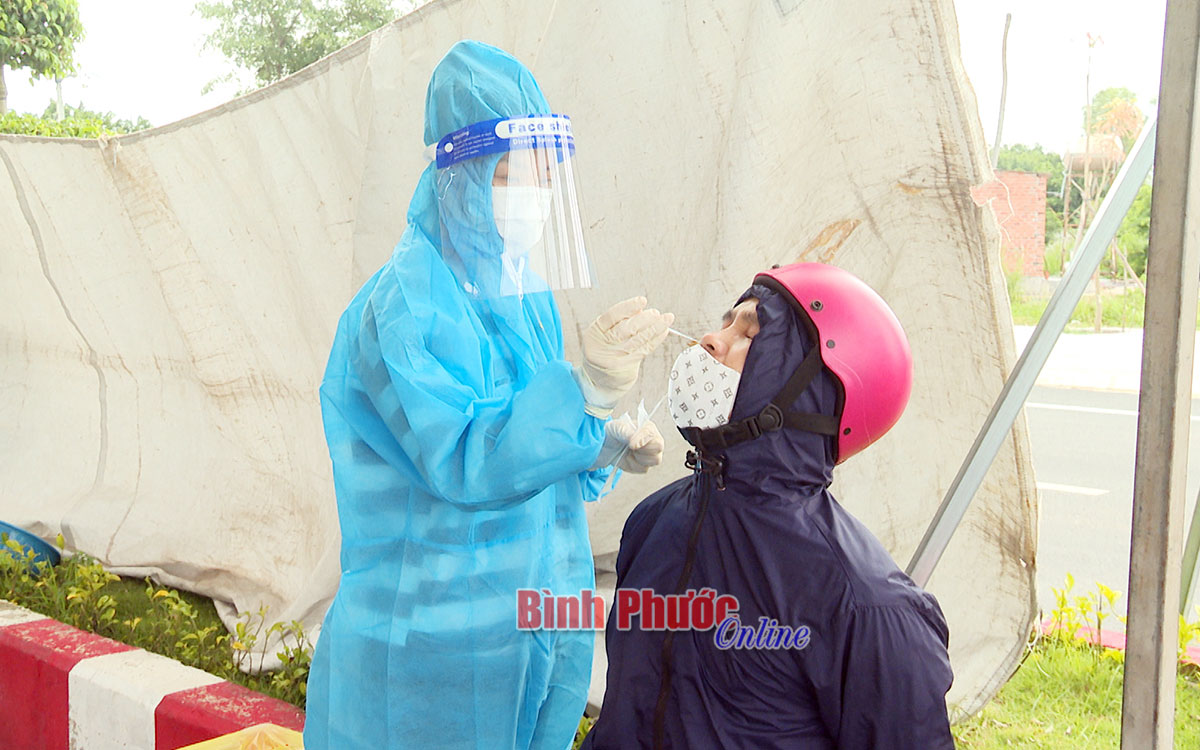 Nhân viên y tế lấy mẫu xét nghiệm lái xe P.T.A, ấp 4, xã Minh Lập, huyện Chơn Thành