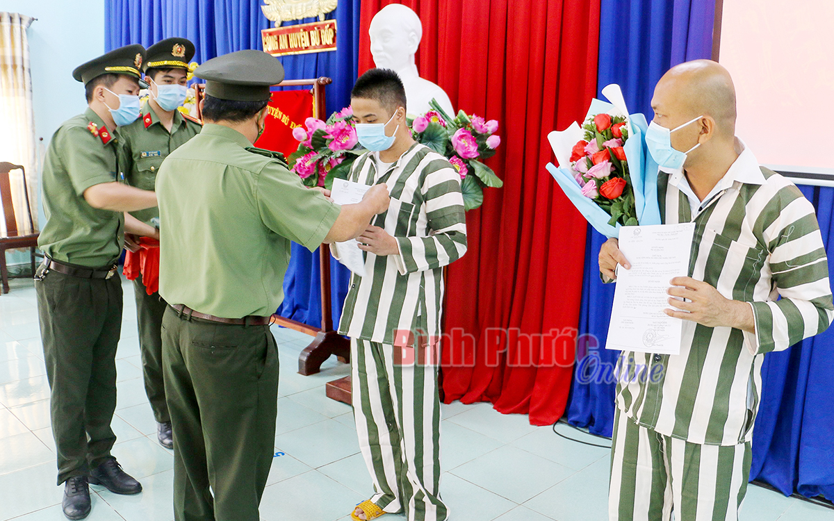 Tại buổi lễ, các đơn vị đã công bố quyết định đặc xá cho 9 phạm nhân đang chấp hành án để về với người thân, hòa nhập với cộng đồng. Trong đó, Trại tạm giam Công an tỉnh và Nhà tạm giữ Công an các huyện Bù Đốp, Đồng Phú, Chơn Thành mỗi đơn vị 2 phạm nhân và Nhà tạm giữ Công an huyện Bù Gia Mập 1 phạm nhân.