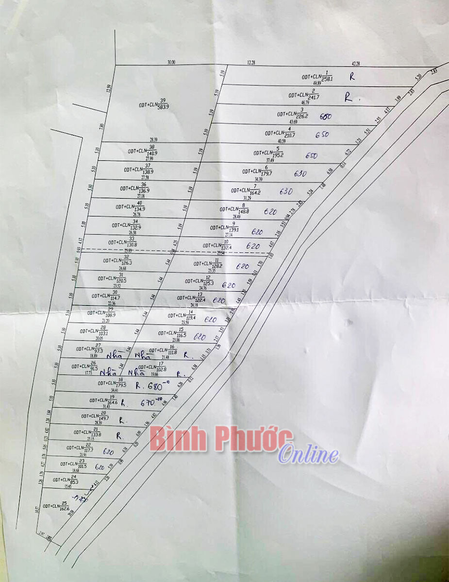 Tuy nhiên, đến hẹn mọi người liên lạc với ông Huy không được. Tìm đến nhà của ông Huy thì không gặp. Tại đây có một người tự xưng là chủ thửa đất số 1824, thửa đất số 479, tờ bản đồ số 15 mang tên hộ ông P.V.H. Người này nói nhờ ông Huy mang lên Phòng Tài nguyên và Môi trường TP. Đồng Xoài nộp nhưng ông Huy lại mang đi cầm cố cho mọi người.
