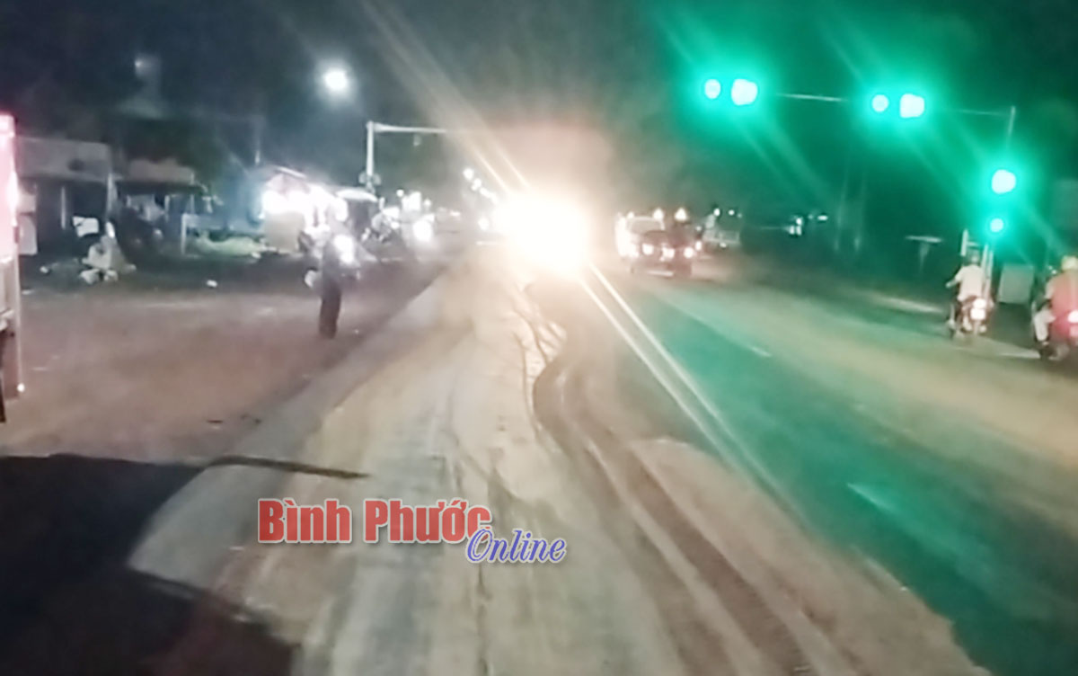 Như Bình Phước online đưa tin, khoảng 17 giờ 30 phút ngày 19-11, Phòng CSGT Công an tỉnh nhận được tin báo, có xe tải (chưa rõ biển số) chở dầu điều làm chảy xuống mặt đường QL14, gây mất an toàn giao thông và gây nguy hiểm cho người đi đường. Nhận tin báo, Phòng CSGT đã cử tổ công tác thuộc Trạm cảnh sát giao thông Đồng Phú (QL14) nhanh chóng xuống hiện trường tiến hành điều tiết, phân luồng giao thông và điều tra xác minh vụ việc.