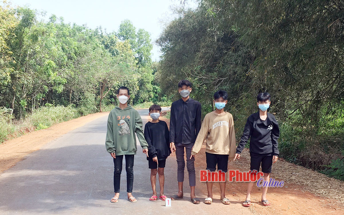 6 đối tượng bị bắt giữ gồm: Nguyễn Trung Hiếu (15 tuổi), Vũ Hồ Thiên Ân (15 tuổi), Nguyễn Phú Quý (15 tuổi), Đặng Trần Quốc Thái (13 tuổi, cùng ngụ thị xã Bình Long); Trần Tuấn Thanh (16 tuổi) và Sơn Trần Anh Tuấn (15 tuổi, cùng ngụ huyện Hớn Quản.