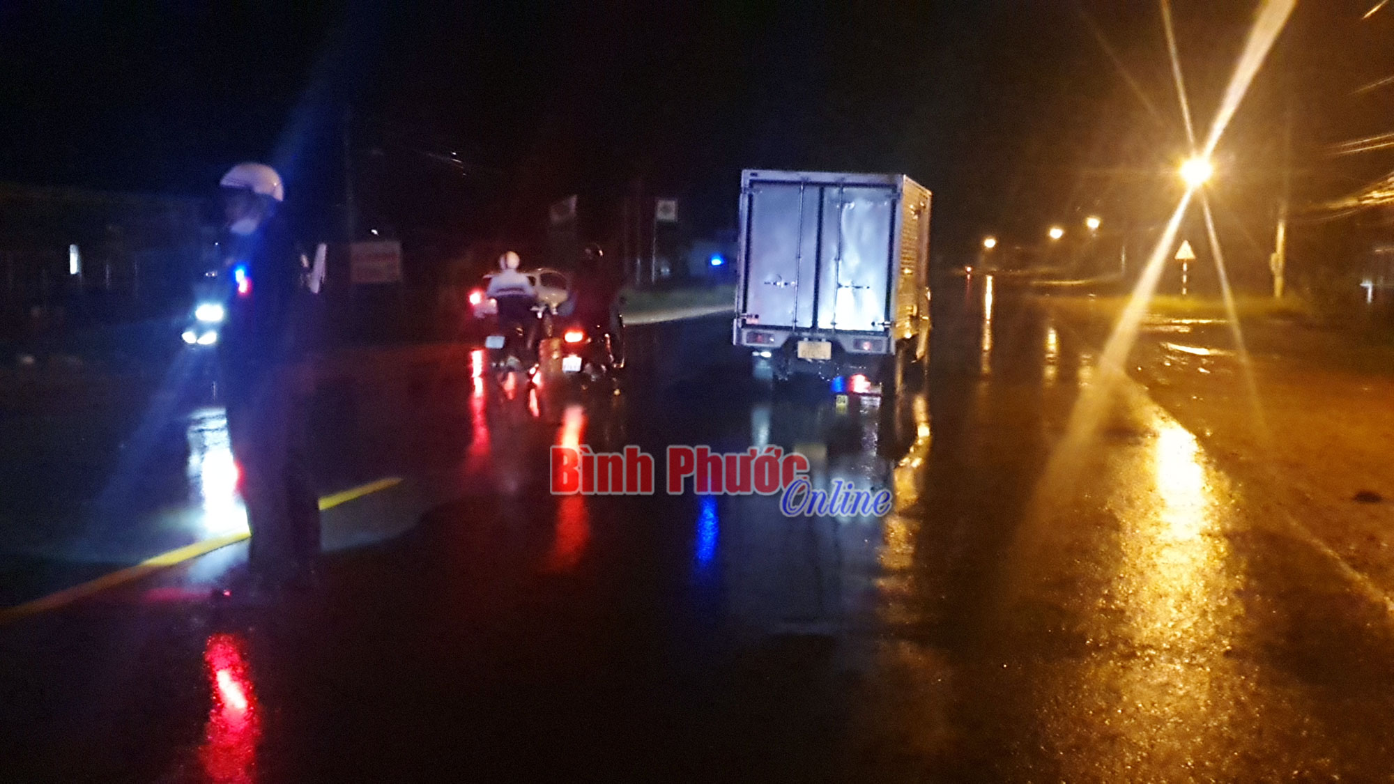 Cảnh sát giao thông Công an tỉnh Bình Phước nhanh chóng có mặt tại hiện trường điều tiết giao thông, điều tra, làm rõ nguyên nhân vụ tai nạn.