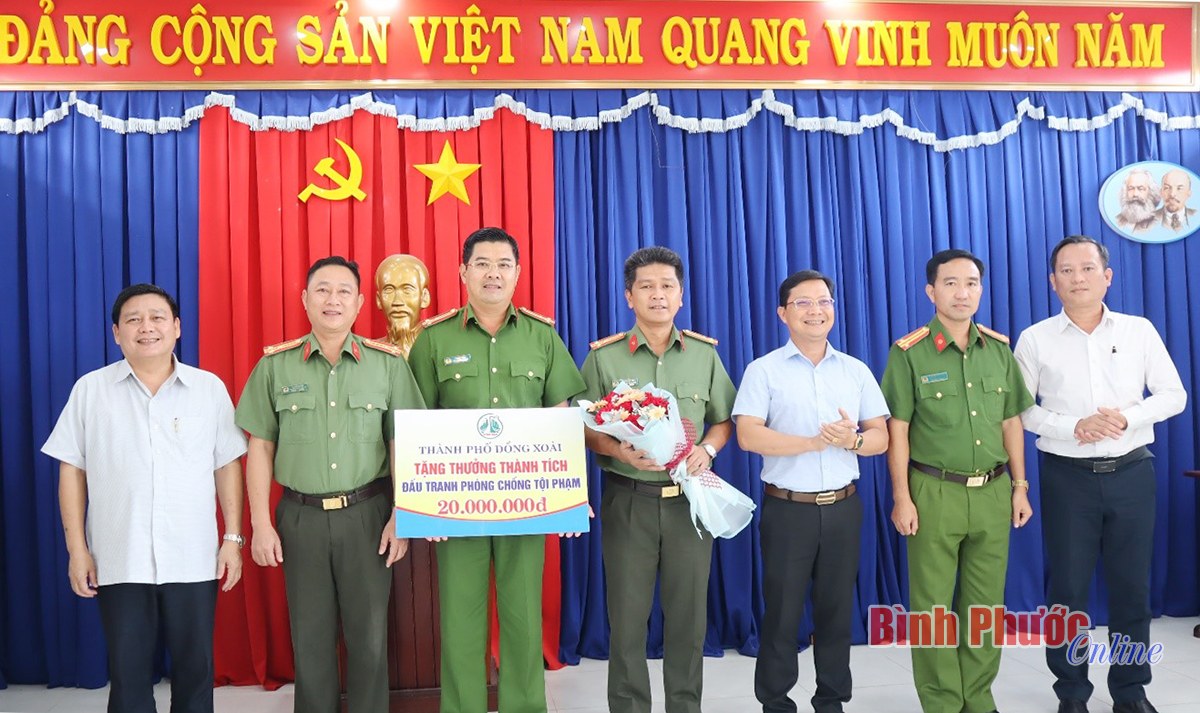 Thường trực Thành ủy Đồng Xoài tặng thưởng, động viên cán bộ, chiến sĩ Công an thành phố trong đấu tranh, triệt phá các băng nhóm tội phạm