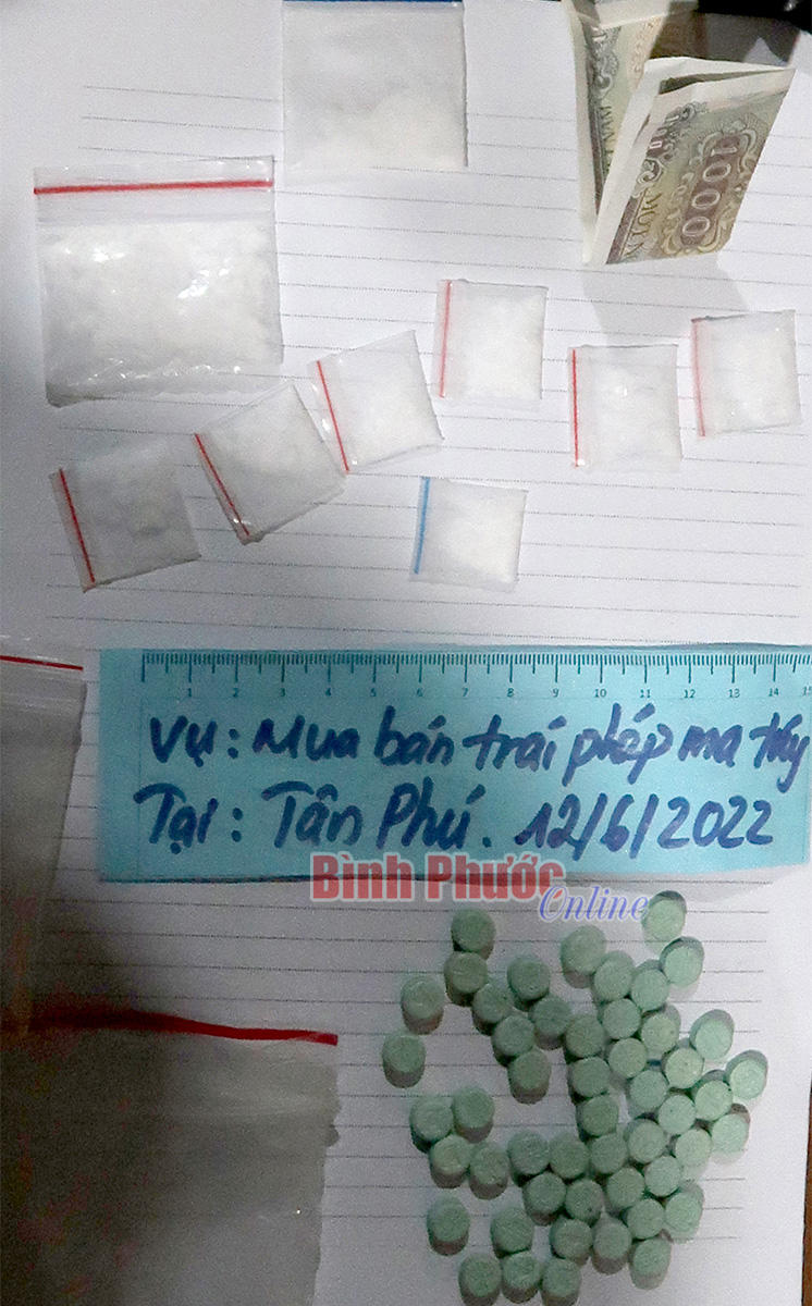 Quá trình kiểm tra hành chính quán Bar HV, cơ quan công an phát hiện trong túi quần của Phạm Văn Tài, 17 tuổi, trú khu phố Tân Trà, phường Tân Xuân, TP. Đồng Xoài, có 1 bọc nilon bên trong có ma túy khay và thuốc lắc. Bước đầu, Tài khai nhận: Số ma túy cất giữ trong người để bán cho khách vào chơi trong bar khi khách có nhu cầu gồm 1 hộp 5 cây ma túy khay và 50 viên thuốc lắc. Tài đã chia ra nhiều bịch lớn, nhỏ và đã bán được 2 bịch. Đến khi bị bắt thì trong người Tài còn 7 bịch nhỏ, 1 bịch lớn và 50 viên thuốc lắc.