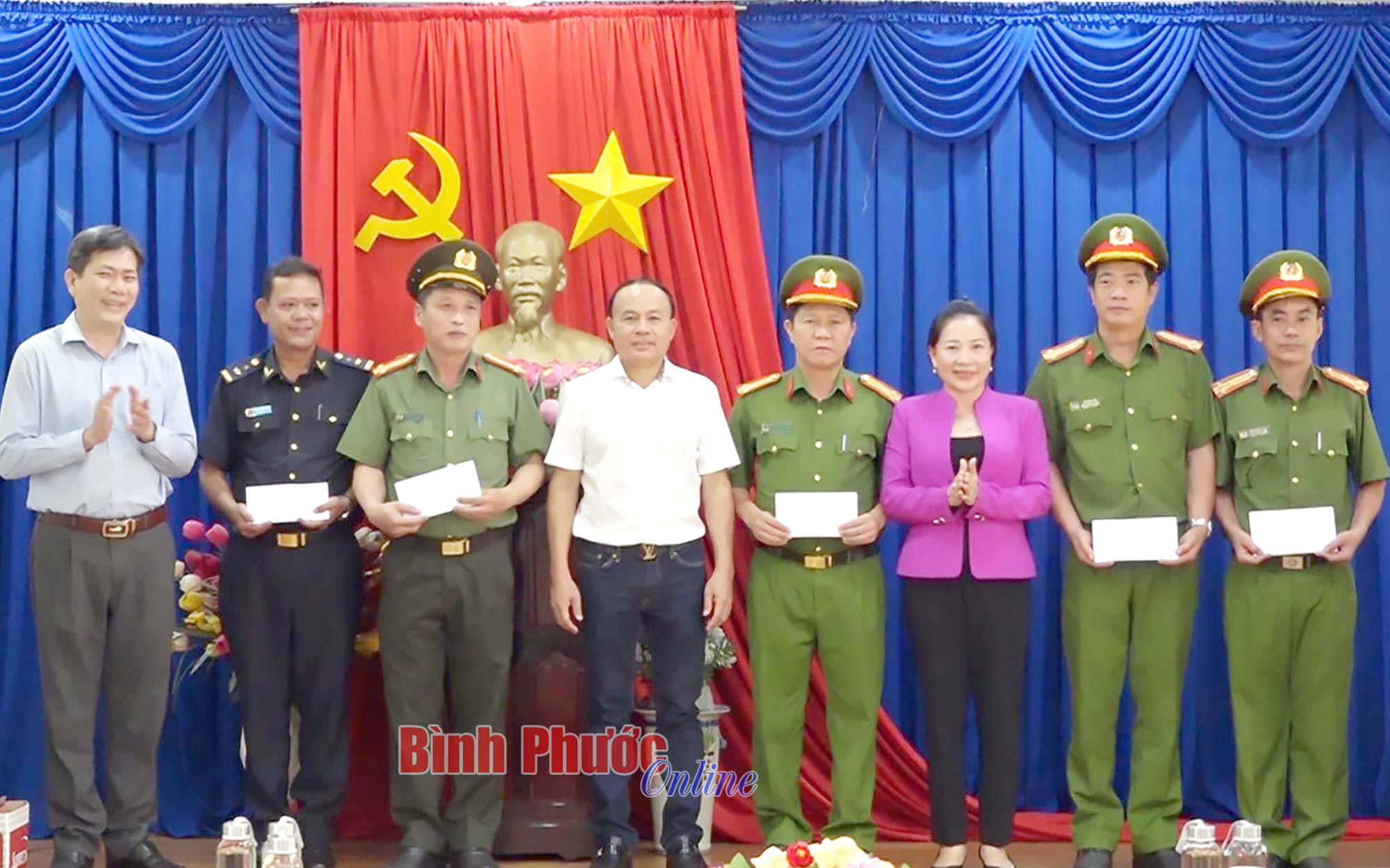 Lãnh đạo Công an huyện Hớn Quản cũng trao thưởng cho lực lượng trong Ban chuyên án 722M