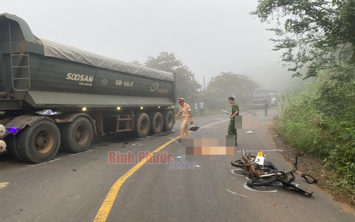 Cú va chạm mạnh khiến L và D tử vong tại chỗ, chiếc xe máy bị hư hỏng nặng.