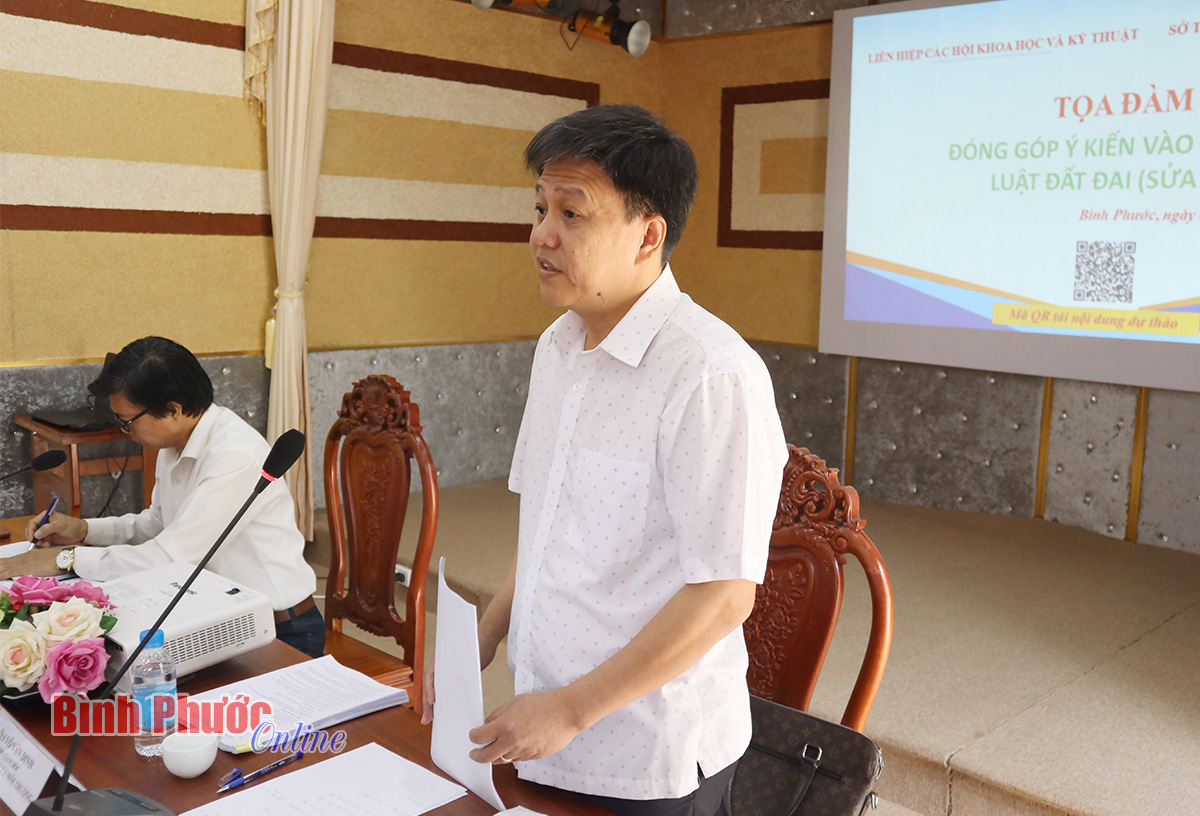 Trên cơ sở thực tế tại địa phương và cả nước, các đại biểu đã góp ý kiến trực tiếp và gửi văn bản về Ban tổ chức tọa đàm để đóng góp, thảo luận nhiều vấn đề quan trọng liên quan đến các điều luật quy định trong dự thảo luật. Cụ thể là: Thẩm quyền giao đất, cho thuê đất, cho phép chuyển mục đích sử dụng đất; về người sử dụng đất, hộ gia đình sử dụng đất; các căn cứ, thẩm quyền, trình tự, thủ tục lập, điều chỉnh quy hoạch, kế hoạch sử dụng đất; chính sách đất đai đối với đồng bào dân tộc thiểu số; quy định về bồi thường, hỗ trợ khi Nhà nước thu hồi đất; nguyên tắc xác định giá đất, bảng giá đất, giá đất cụ thể; thẩm quyền giải quyết tranh chấp đất đai…