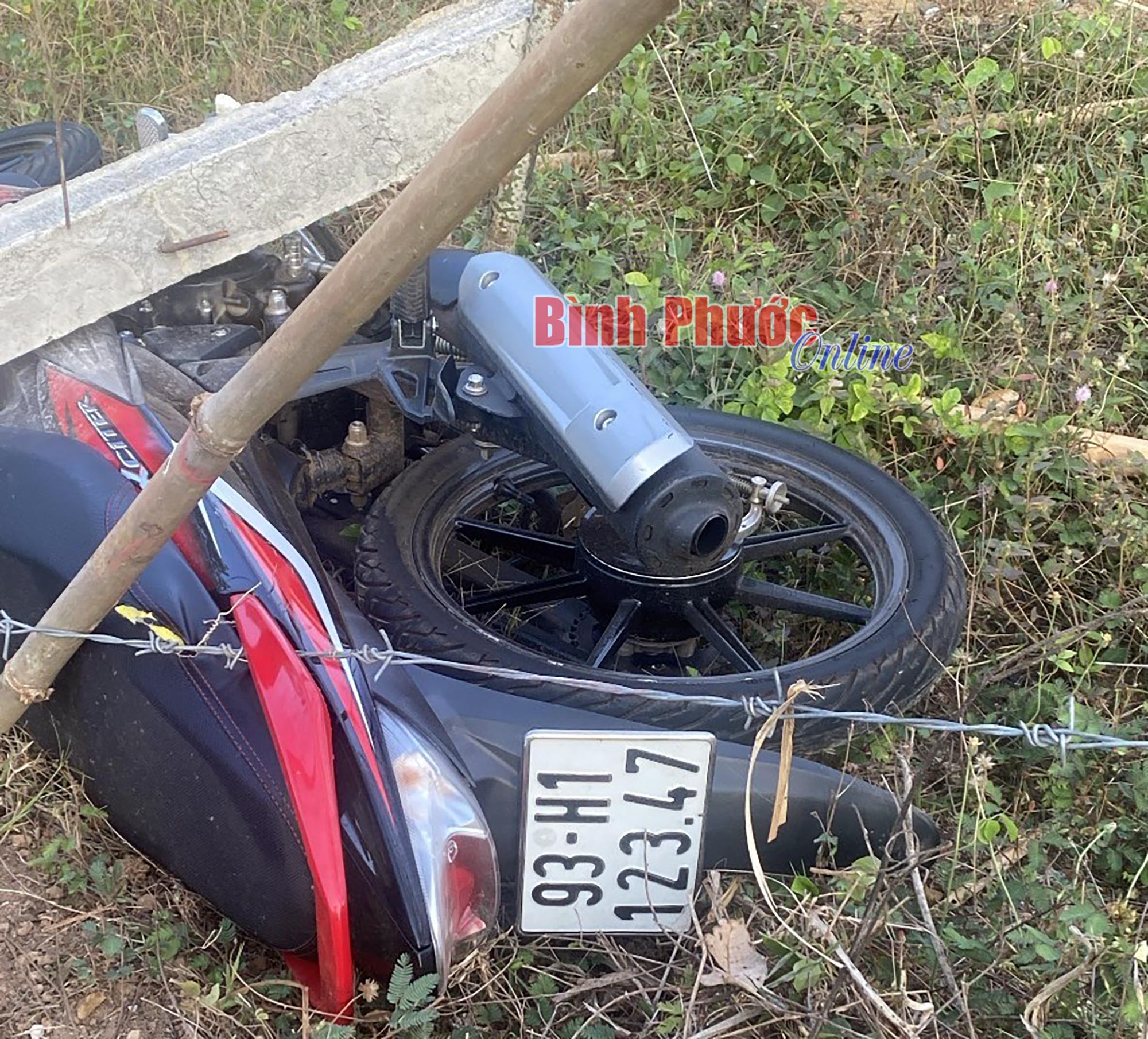 Tại hiện trường, nạn nhân được phát hiện tử vong bên lề đường, cạnh hàng rào thép gai, chiếc xe máy bị vỡ nát phần đầu.
