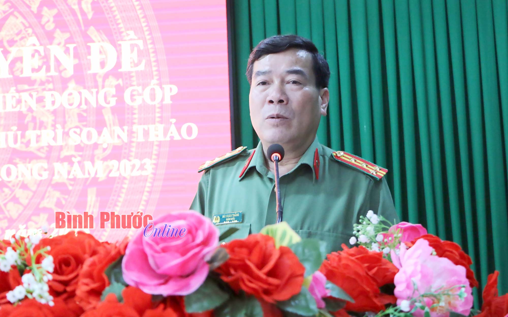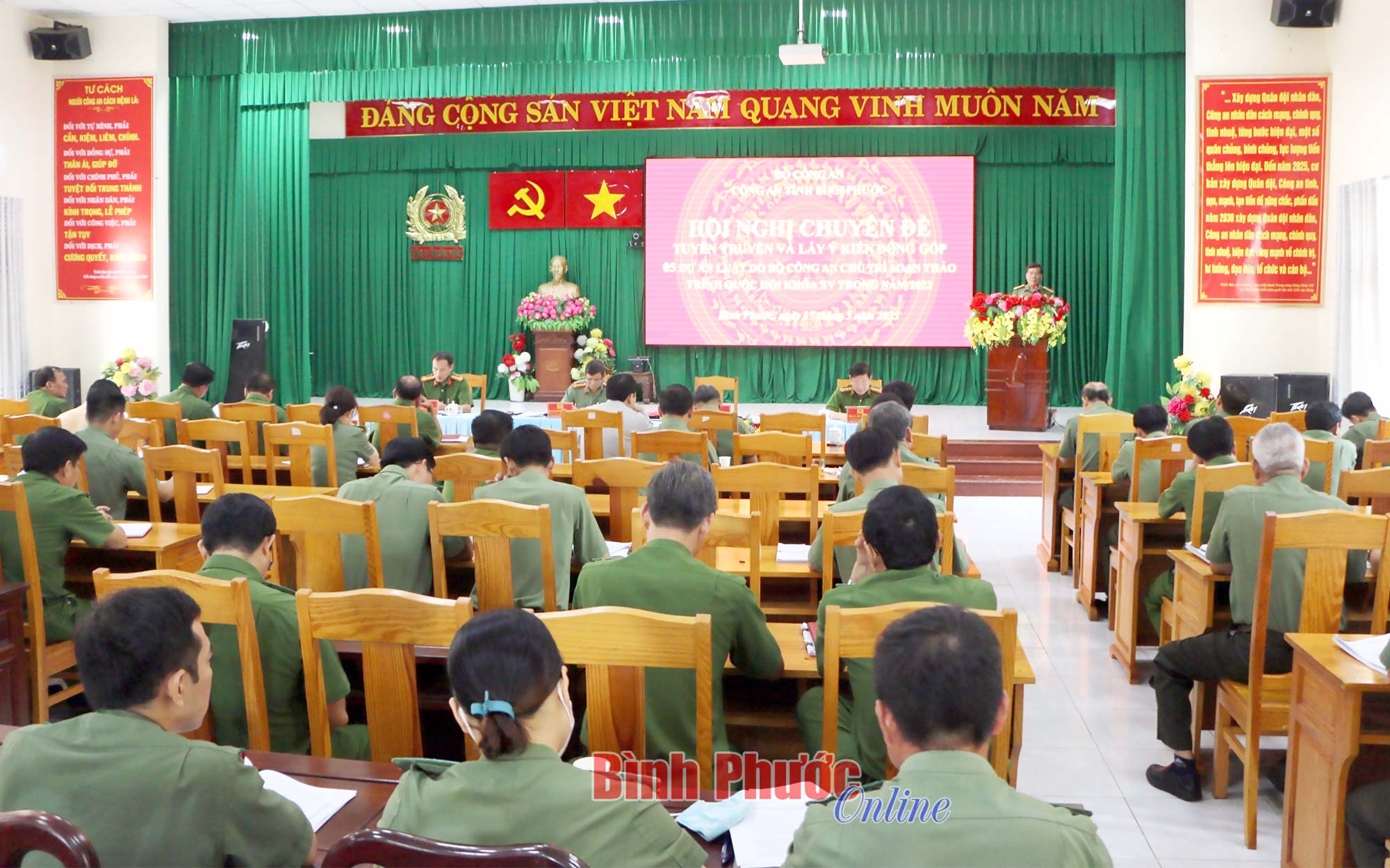 Kết luận hội nghị, Đại tá Bùi Xuân Thắng, Giám đốc Công an tỉnh đề nghị cán bộ, chiến sĩ Công an tỉnh phải tiếp tục làm tốt công tác tuyên truyền cho người dân về 5 dự án luật do Bộ Công an chủ trì soạn thảo lần này. Trong bối cảnh hiện nay, 5 dự án luật này rất cần thiết, giúp lực lượng CAND chủ động trong công tác tham mưu với Đảng, Nhà nước các chủ trương, chính sách về bảo đảm an ninh trật tự; triển khai có hiệu quả các nhiệm vụ, giải pháp thực hiện chiến lược bảo vệ an ninh quốc gia, bảo đảm trật tự, an toàn xã hội và xây dựng lực lượng CAND thực sự trong sạch, vững mạnh, chính quy, tinh nhuệ, hiện đại theo tinh thần Nghị quyết số 12 của Bộ Chính trị.