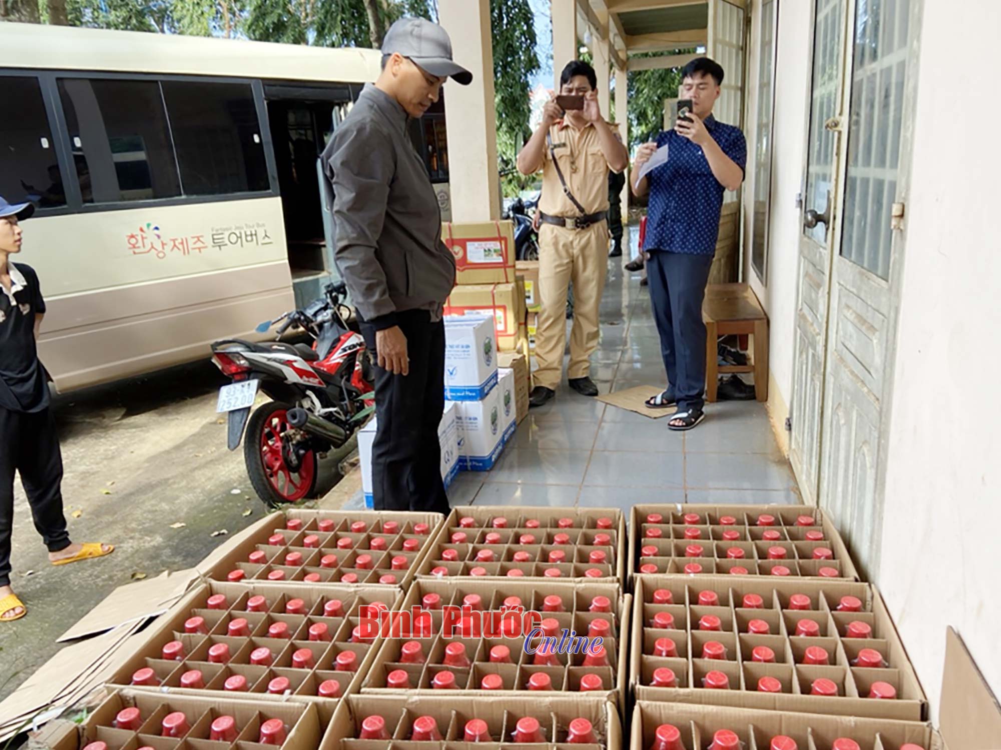 Trước đó, khoảng 13 giờ 35 phút cùng ngày (13-10), tổ công tác thuộc Đội số 3, Phòng CSGT Công an tỉnh thực hiện tuần tra, kiểm soát trên tuyến ĐT.759. Tại km27, thuộc xã Bình Sơn, huyện Phú Riềng, tỉnh Bình Phước, phát hiện xe ô tô khách mang biển số 48B-000.83 do Vũ Văn Chiến (sinh năm1983), thường trú thôn Quảng Hợp, xã Quảng Sơn, huyện Đắk Glong, tỉnh Đắk Nông điều khiển lưu thông hướng Bù Đốp - Phước Long. Sau khi dừng xe kiểm tra, tổ công tác phát hiện trong khoang chở hành khách có nhiều thùng giấy carton chứa chai và can nhựa đựng 414 lít dung dịch không rõ nguồn gốc, xuất xứ.