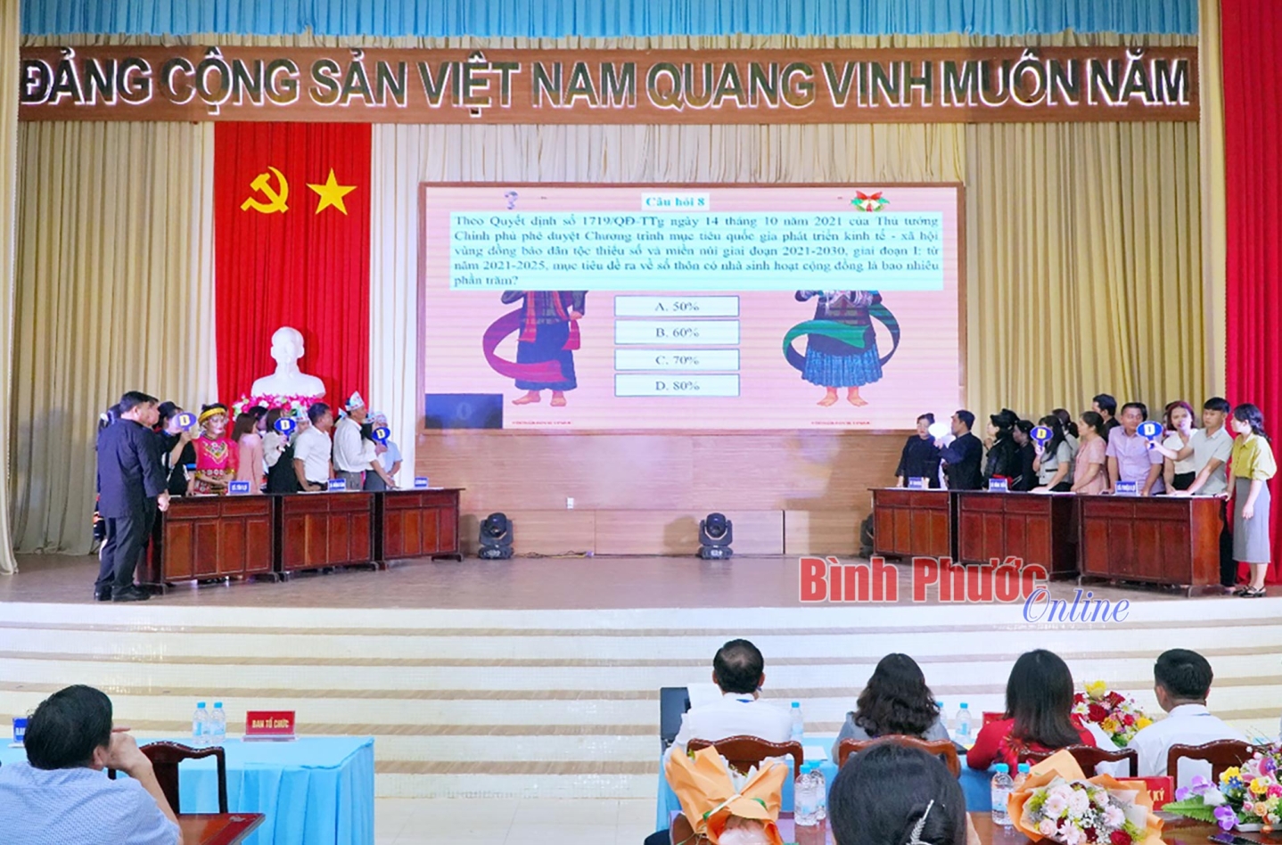Các đội trải qua 4 phần thi gồm: chào hỏi, trắc nghiệm kiến thức, trả lời tình huống và tiểu phẩm tuyên truyền. Nội dung thi tập trung vào tìm hiểu pháp luật về lĩnh vực dân tộc, trọng tâm là chương trình mục tiêu quốc gia phát triển kinh tế - xã hội vùng đồng bào dân tộc thiểu số và miền núi giai đoạn 2021-2030; những quy định của pháp luật liên quan trực tiếp đến đời sống đồng bào dân tộc thiểu số.