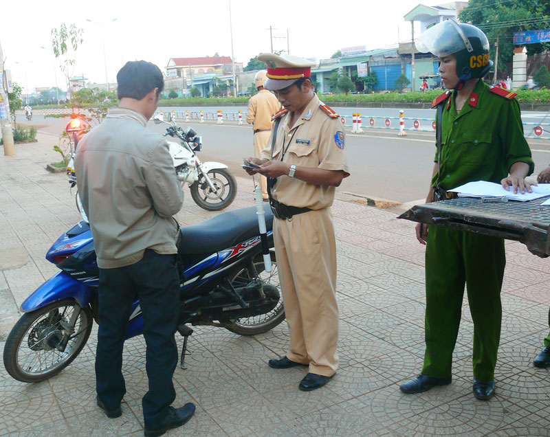 Cảnh sát giao thông tuần tra kiểm soát đảm bảo an toàn giao thông trên quốc lộ 14