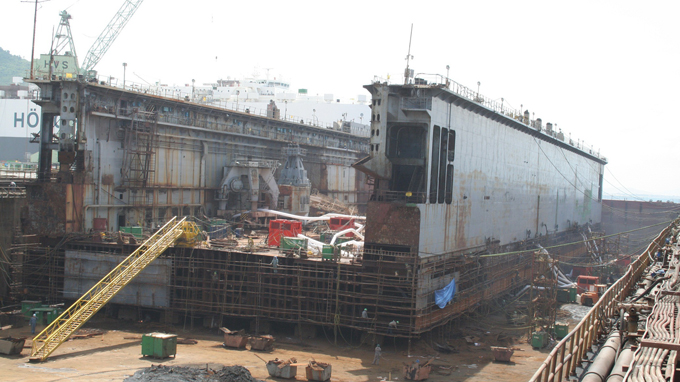 Ụ tàu cũ của Vinalines mua về sửa chữa tại Nhà máy tàu biển Hyundai Vinashin (Khánh Hòa) tháng 7-2008