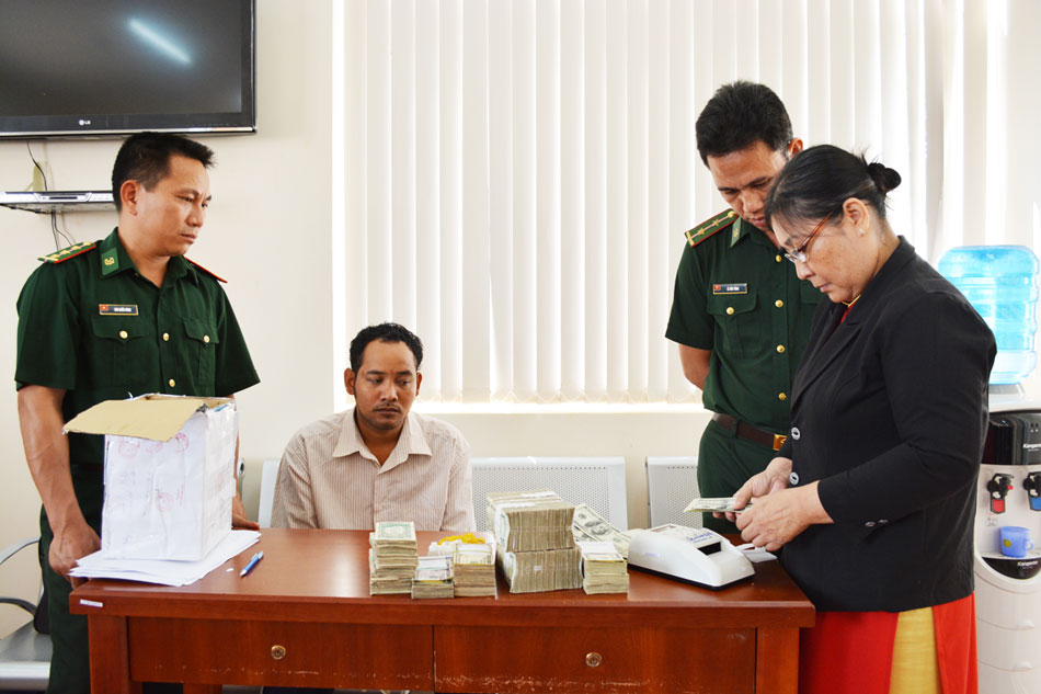 Sáng ngày 10-3, Đồn biên phòng cửa khẩu quốc tế Hoa Lư đã phối hợp với Ngân hàng Nông nghiệp và Phát triển nông thôn chi nhánh Lộc Ninh xác minh, kiểm định số ngoại tệ là tang vật trong một vụ vận chuyển tiền tệ trái phép qua biên giới.