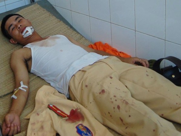 Thiếu úy Hiếu tại bệnh viện 198Sự việc trên xảy ra vào khoảng 9 giờ sáng nay, 12/8 tại chốt giao thông Nguyễn Trãi-Khuất Duy Tiến.