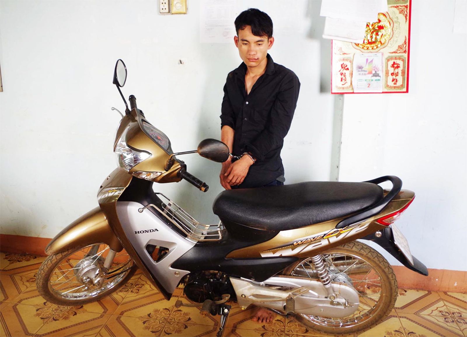Đối tượng Lê Thọ Cường cùng chiếc xe trộm cắp