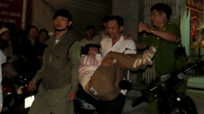 Tại hiện trường, khoảng 20g30, công an đã đưa một nghi can là phụ nữ ra xe chở đi.