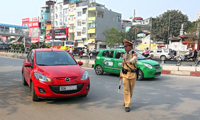 ![]() Đội cảnh sát giao thông số 3 xử lý phương tiện vi phạm sau khi được thông báo qua bộ đàm từ Trung tâm Điều khiển giao thông Hà Nội |
