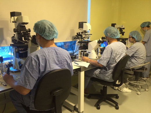 Các chuyên viên thực hiện thụ tinh trong ống nghiệm.