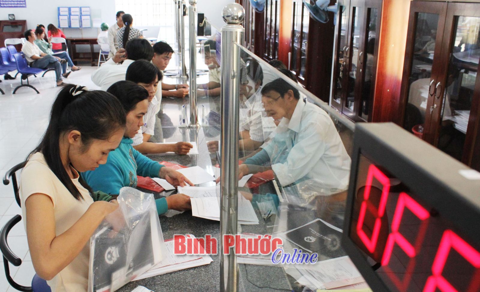 Người dân đăng ký cấp giấy chứng nhận quyền sử dụng đất tại phòng một cửa thị xã Đồng Xoài - Ảnh: B.L