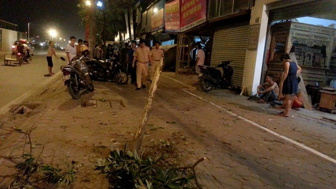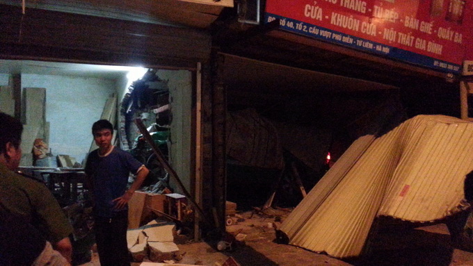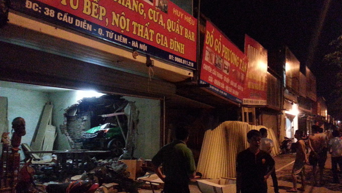 Tại hiện trường, chiếc xe 7 chỗ hiệu Mai Linh nằm gọn trong gian nhà dân, phần đầu xe bị nát bét. Cánh cửa xếp và các cột trụ sắt của nhà số 40 Cầu Diễn bị đâm sập, bức tường của số nhà 38 bị đâm thủng.