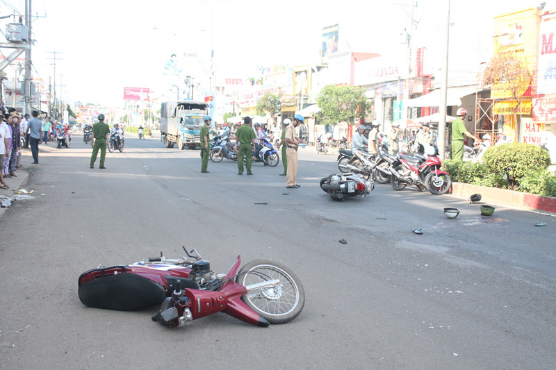 Khoảng 15 giờ 20 phút ngày 18-5, trên đường ĐT741 đoạn qua phường Tân Bình, thị xã Đồng Xoài (ngã ba đường Điểu Ông với đường ĐT741), xảy ra vụ tai nạn giao thông giữa hai xe máy khiến một người chết, hai người bị thương.