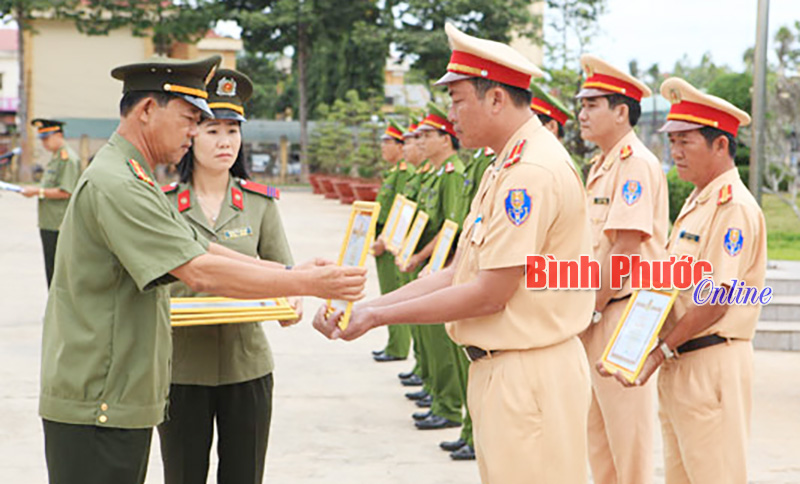 Ban giám đốc Công an tỉnh khen thưởng “nóng” cán bộ, chiến sĩ CSGT tham gia trấn áp tội phạm - Ảnh: V.T