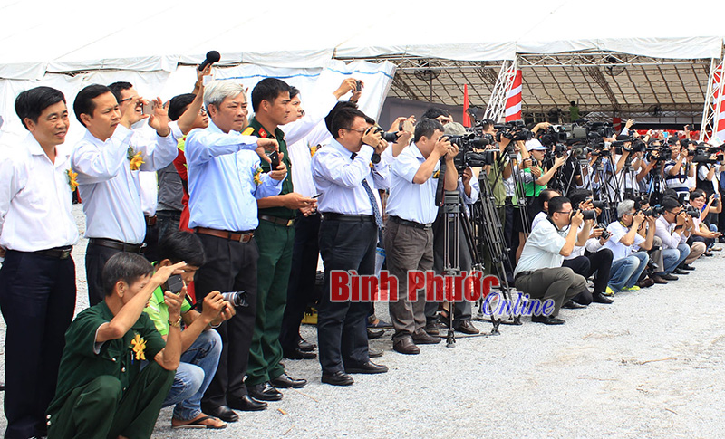 Các nhà báo tác nghiệp tại lễ khởi công Khu liên hợp công nghiệp và đô thị Becamex - Bình Phước - Ảnh: C.TR