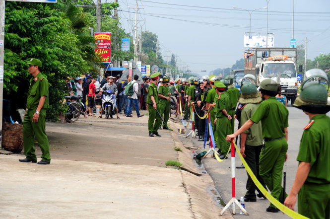 Công an huyện Chơn Thành đã huy động lực lượng tại chỗ và sau đó cử thêm hàng trăm cảnh sát 113, CSGT và lực lượng hỗ trợ tới bảo vệ hiện trường.