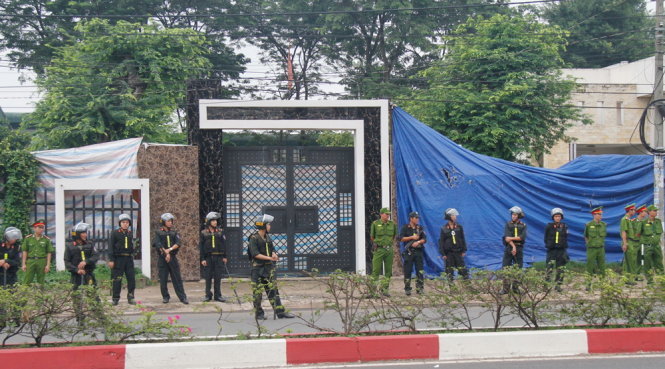 Rất nhiều công an được huy động bảo vệ trước ngôi biệt thự xảy ra thảm sát