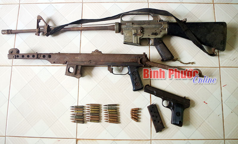 Cụ thể, tại huyện Đồng Phú, qua tuần tra, kiểm soát lực lượng công an đã phát hiện thu giữ 1 súng thể thao, 1 súng cồn tự chế, vận động người dân giao nộp 1 súng săn. Tại thị xã Bình Long, người dân tự nguyện giao nộp 3 khẩu súng quân dụng và 28 viên đạn các loại. Huyện Phú Riềng, người dân giao nộp 25 súng cồn tự chế, 2 súng hơi, 2 gậy điện. Huyện Bù Gia Mập, nhân dân giao nộp 1 khẩu súng AK, 1 khẩu súng AR15, 1 roi điện, 4 súng cồn tự chế, 26 cây mã tấu, dao, kiếm các loại.