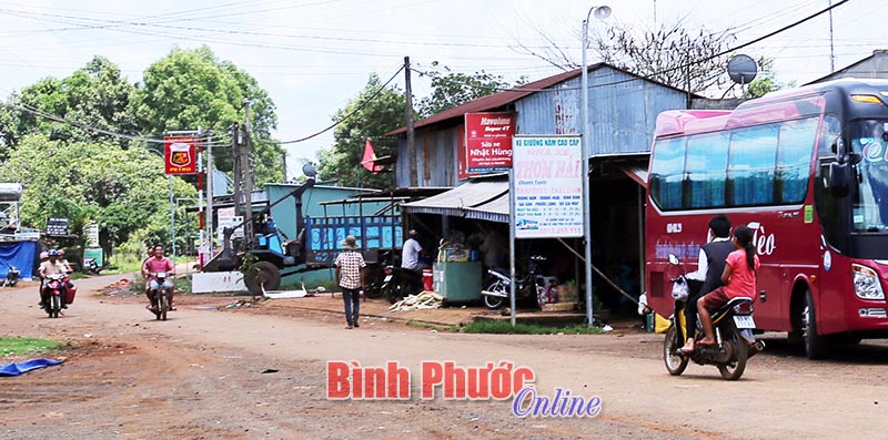 Trước cổng chợ xã Bù Gia Mập (Bù Gia Mập) nhiều người dân bất chấp pháp luật về giao thông vẫn không đội mũ bảo hiểm khi ngồi trên môtô, xe máy.