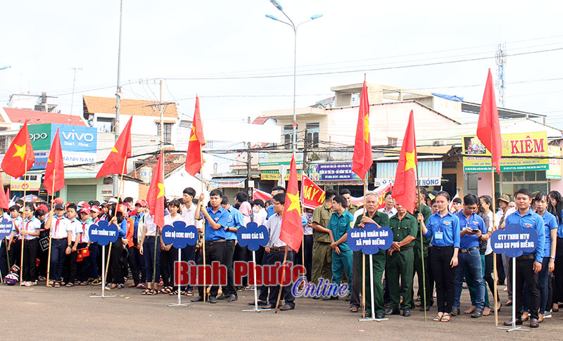 Đại biểu, đoàn viên, học sinh và nhân dân huyện Phú Riềng tham gia lễ mít tinh - Ảnh: P. Yến