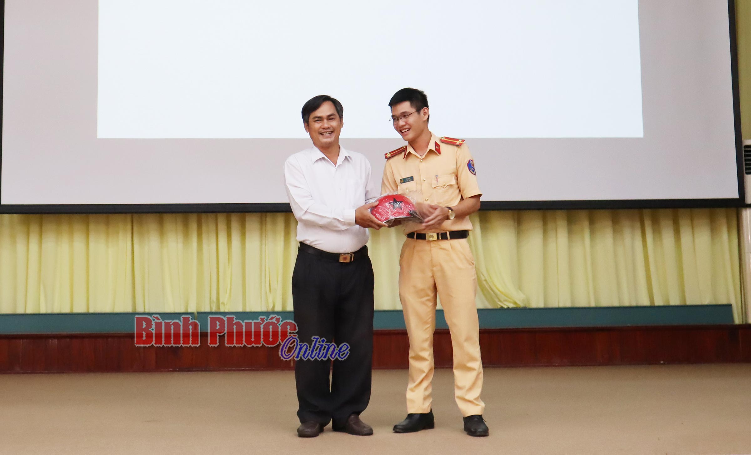 Công an thành phố Đồng Xoài trao quà cho cán bộ công đoàn cơ sở trả lời đúng nội dung quy định về an toàn giao thôngĐại diện Công an thành phố Đồng Xoài đã thông tin về phương thức thủ đoạn tội phạm mới về lừa đảo, lợi dụng tín nhiệm chiếm đoạt tài sản; trộm cắp tài sản. Đồng thời cung cấp thông tin về tình hình trật tự, an toàn giao thông trên cả nước và địa bàn thành phố Đồng Xoài. Ngoài ra, cũng phân tích nguyên nhân các vụ tai nạn giao thông và cách tham gia giao thông an toàn, phòng tránh tai nạn giao thông.