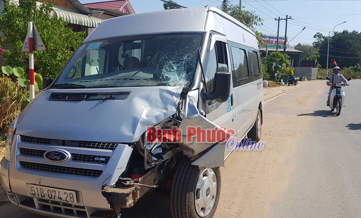 Chiếc xe khách bị hư hỏng phần đầuKhi đến khu phố 2, thị trấn Chơn Thành, ông Hữu tăng tốc lấn sang đường bên trái và tông trực diện vào chiếc xe khách loại 16 chỗ mang biển kiểm soát 51B - 074.28 (chưa rõ người điều khiển) đang lưu thông theo chiều ngược lại.