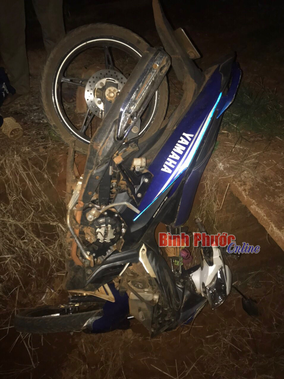 Xe mô tô do Mạnh điều khiển lao xuống mương đất bên lề đường