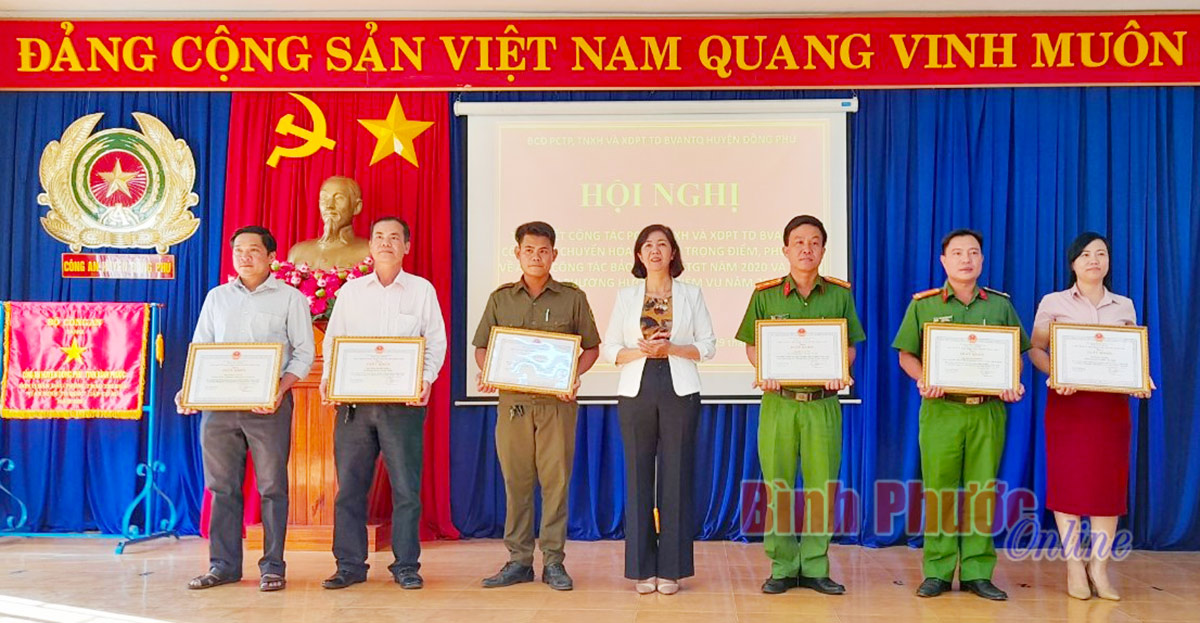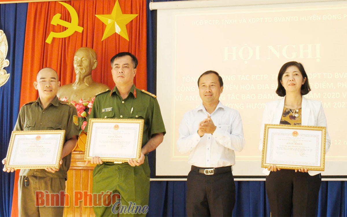 Dịp này, 3 tập thể, 6 cá nhân có thành tích xuất sắc trong phong trào toàn dân bảo vệ ANTQ; 10 tập thể, 16 cá nhân có thành tích xuất sắc trong công tác bảo đảm trật tự ATGT năm 2020 đã được Chủ tịch UBND huyện Đồng Phú tặng giấy khen.
