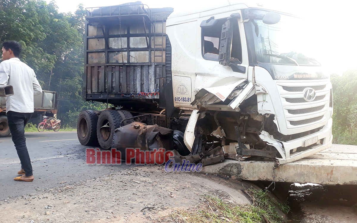 Vào thời điểm trên, xe đầu kéo mang biển kiểm soát 61C-183.81 kéo theo rơ moóc mang biển kiểm soát 61R-012.50 do anh Lê Đình Khoa (ngụ xã Tân Hưng, huyện Hớn Quản) điều khiển đang lưu thông hướng Chơn Thành đi Đồng Xoài thì bất ngờ bị nổ lốp bánh trước bên phải.