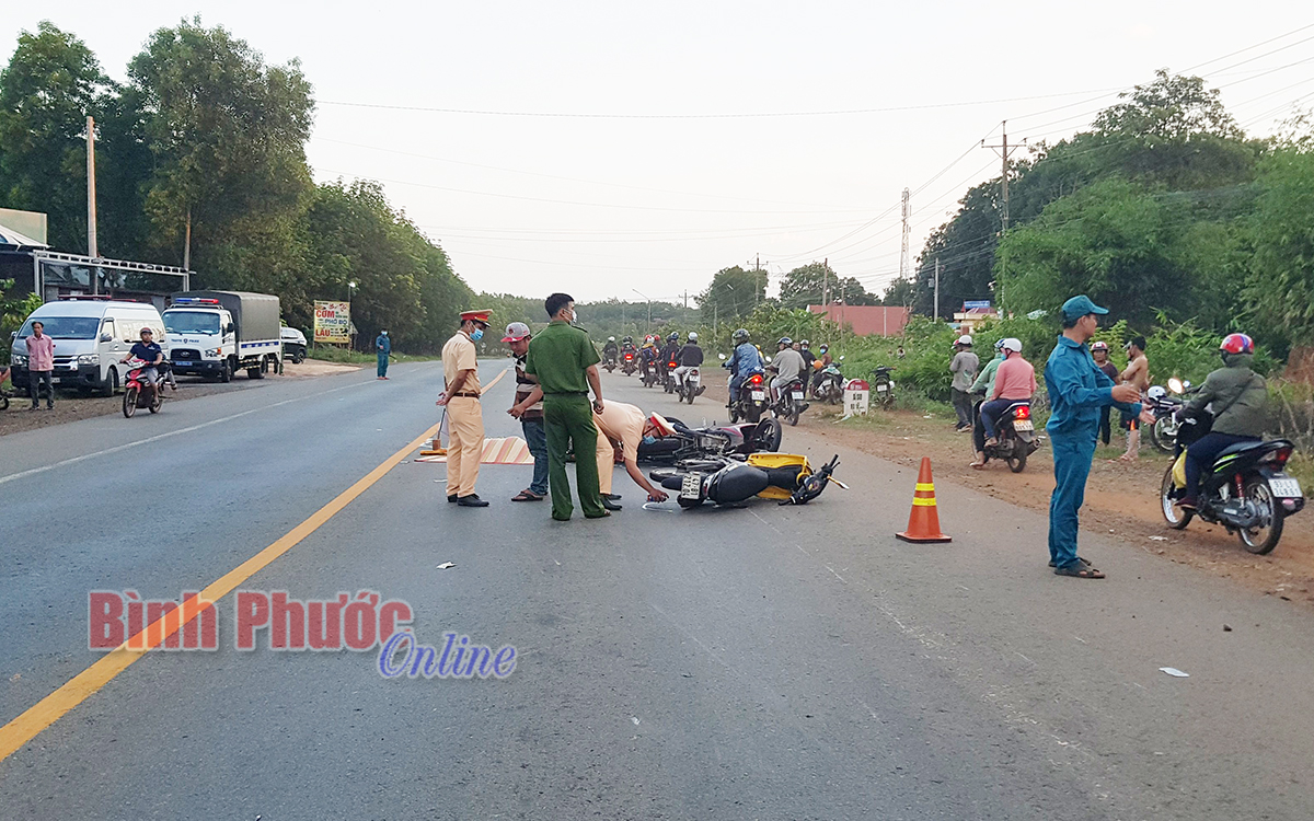 Cảnh sát giao thông, Công an huyện Đồng Phú có mặt tại hiện trường phối hợp với Công an xã Đồng Tâm điều tiết giao thông, điều tra làm rõ nguyên nhân vụ tai nạn.