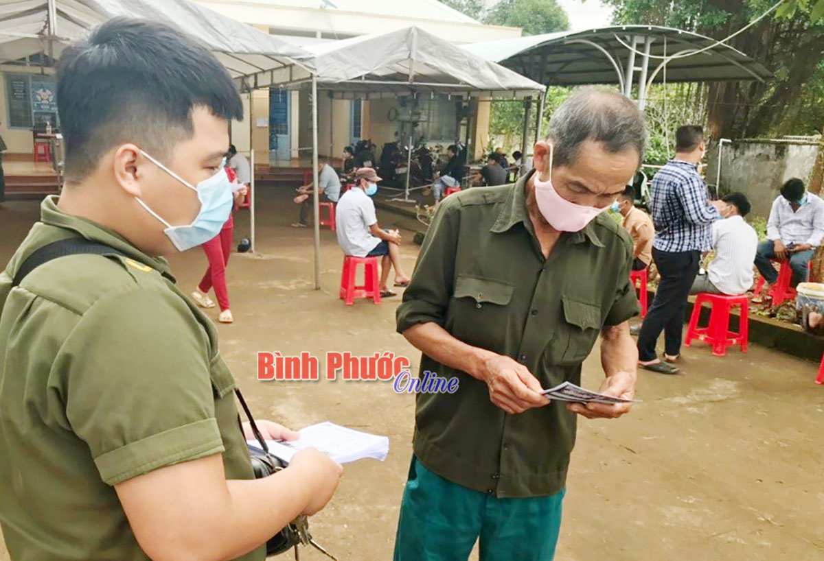 Công an xã Tân Phước tuyên truyền, phát tờ rơi đến người dân về phương thức, thủ đoạn hoạt động của các loại tội phạm