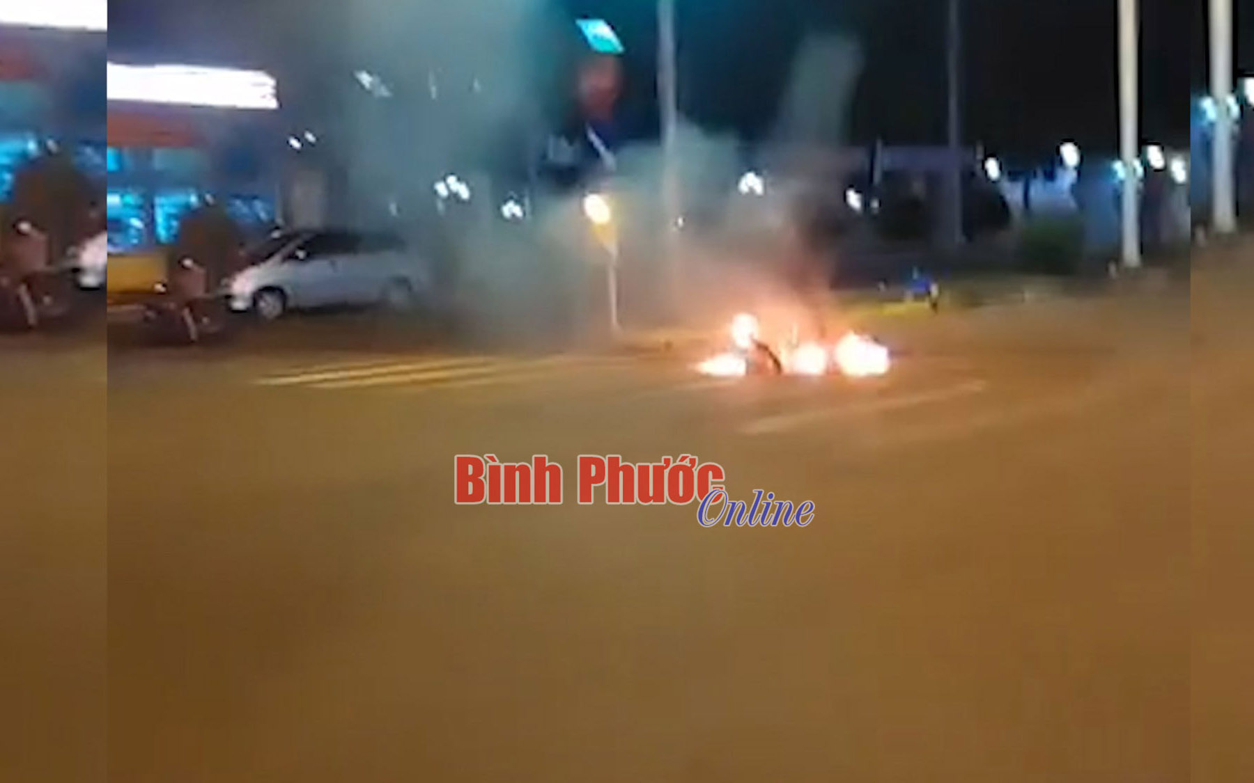 Trước đó, khoảng 21 giờ 45 phút tối 12-8, trên đường ĐT.741 (đoạn qua thôn Phú Thịnh, xã Phú Riềng) xảy ra vụ hỗn chiến giữa 2 nhóm thanh niên. Sau một hồi đuổi đánh nhau gây náo loạn đường phố, 2 thanh niên (chưa rõ danh tính) đã bỏ lại chiếc xe máy hiệu Exciter chạy thoát thân. Ngay lập tức, chiếc xe bị nhóm đối thủ dùng chai (loại giống bom xăng) đốt khiến chiếc xe cháy rụi giữa đường.