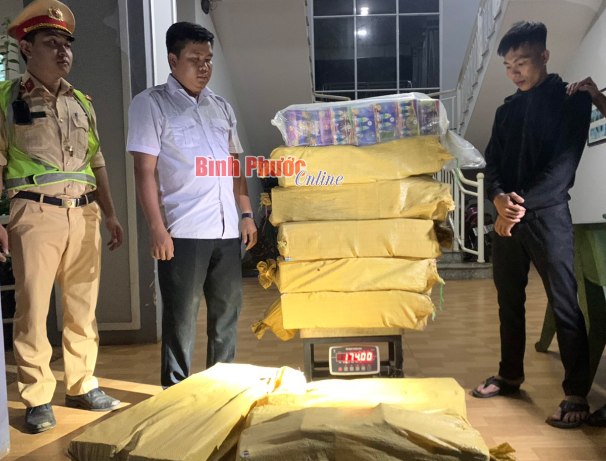 Khám xét trong xe ô tô 60A-463.20, lực lượng chức năng phát hiện có 150 bánh pháo hoa nổ, trọng lượng 260kg. Hai đối tượng bị bắt tên Lê Quốc Khoa, sinh năm 2001 và Phạm Văn Cường, sinh năm 1992, cùng hộ khẩu thường trú huyện Trảng Bom, tỉnh Đồng Nai. Theo lời khai ban đầu, do cần tiền tiêu tết nên Khoa đã lên khu vực chợ Thiện Hưng, huyện Bù Đốp mua pháo và thuê Cường dùng xe ô tô 60A-463.20 để vận chuyển về tỉnh Đồng Nai tiêu thụ.