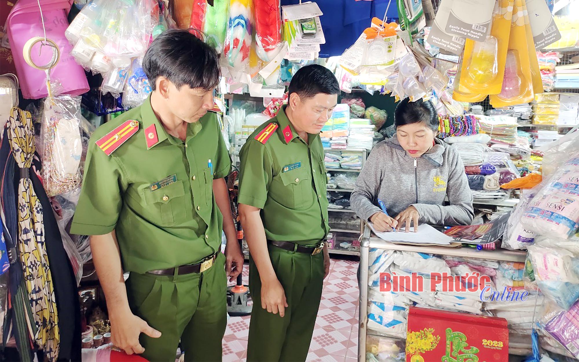 Chợ Lộc Ninh là trung tâm buôn bán lớn nhất của huyện, có QL13 đi qua, gần Cửa khẩu quốc tế Hoa Lư. Dịp cuối năm, không khí giao thương ở đây rất nhộn nhịp, tiềm ẩn buôn bán VK, pháo nổ trái phép các loại. Ngoài tuyên truyền phát qua loa truyền thanh thường xuyên để mọi người nâng cao ý thức chấp hành pháp luật, lực lượng Công an huyện phối hợp Công an thị trấn Lộc Ninh trực tiếp tới nhắc nhở các hộ tiểu thương, người dân, kết hợp phát tờ rơi tuyên truyền và yêu cầu các hộ kinh doanh tại đây ký cam kết không vận chuyển, mua bán, đốt pháo trái phép...