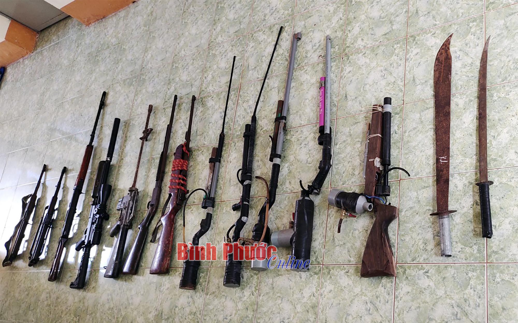 Phòng Cảnh sát QLHC về TTXH Công an tỉnh thu gom các loại vũ khí, hung khí tự chế nguy hiểm trong nhân dân